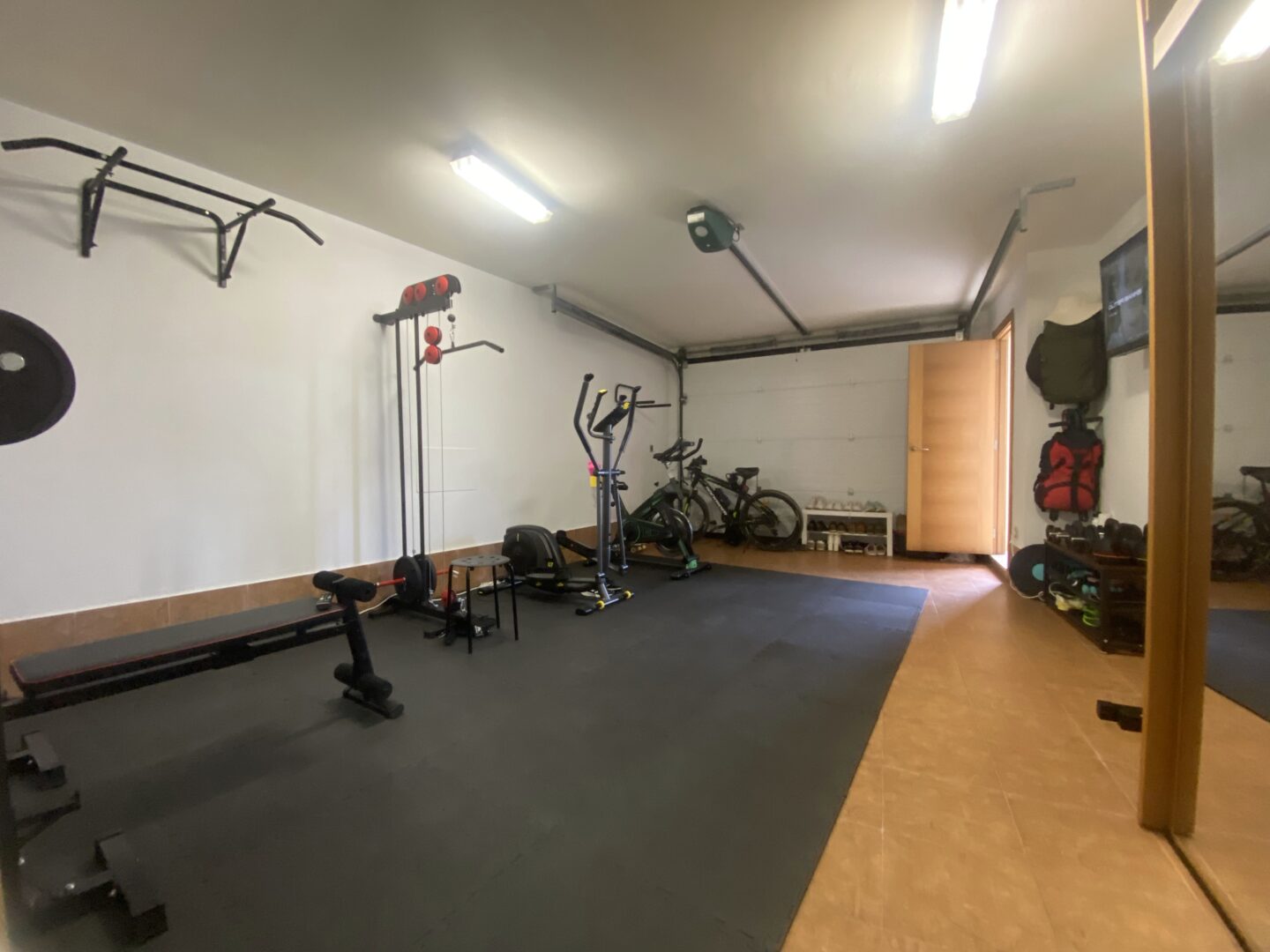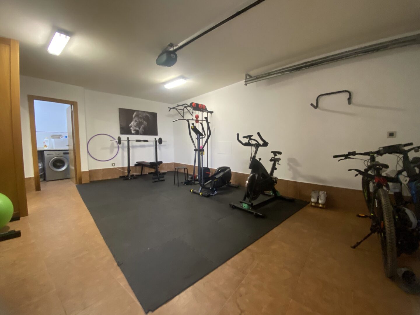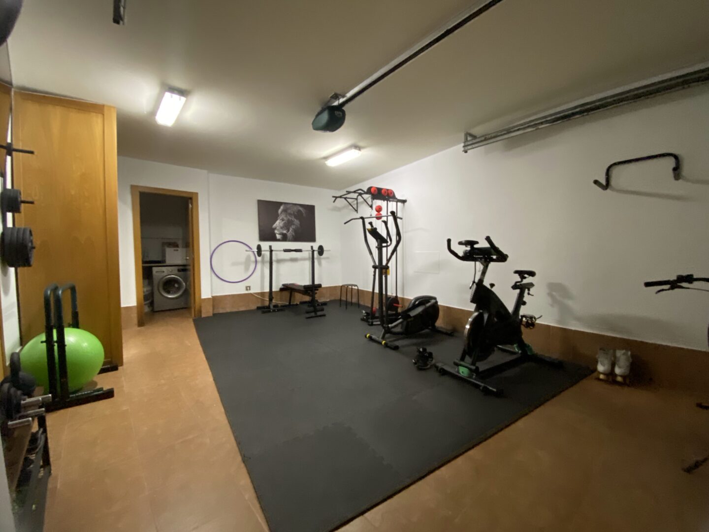 En la planta baja está situado el garaje cerrado con portón automático (hoy día utilizado como gimnasio) y un cuarto de lavado y con caldera de gasóil.