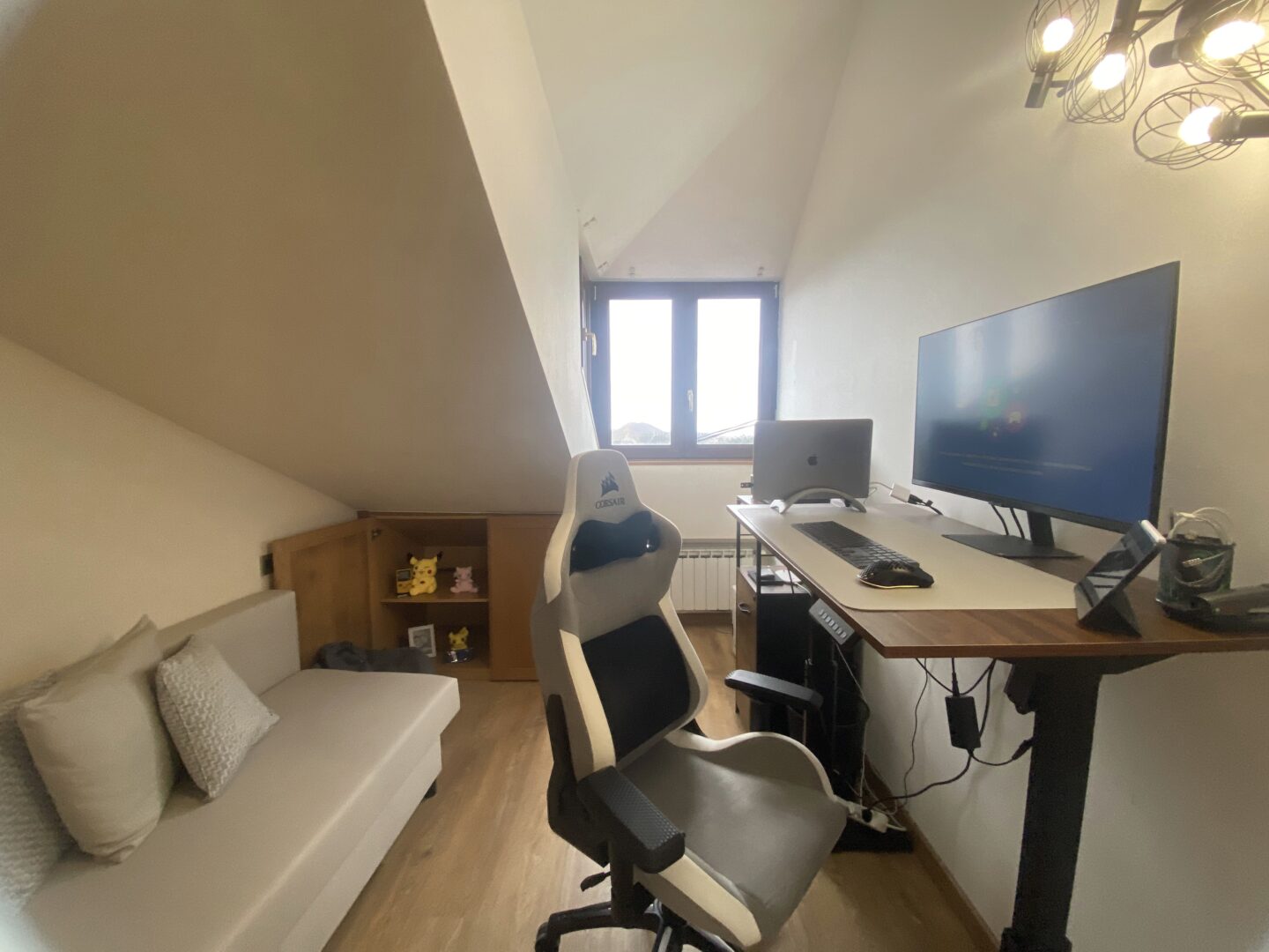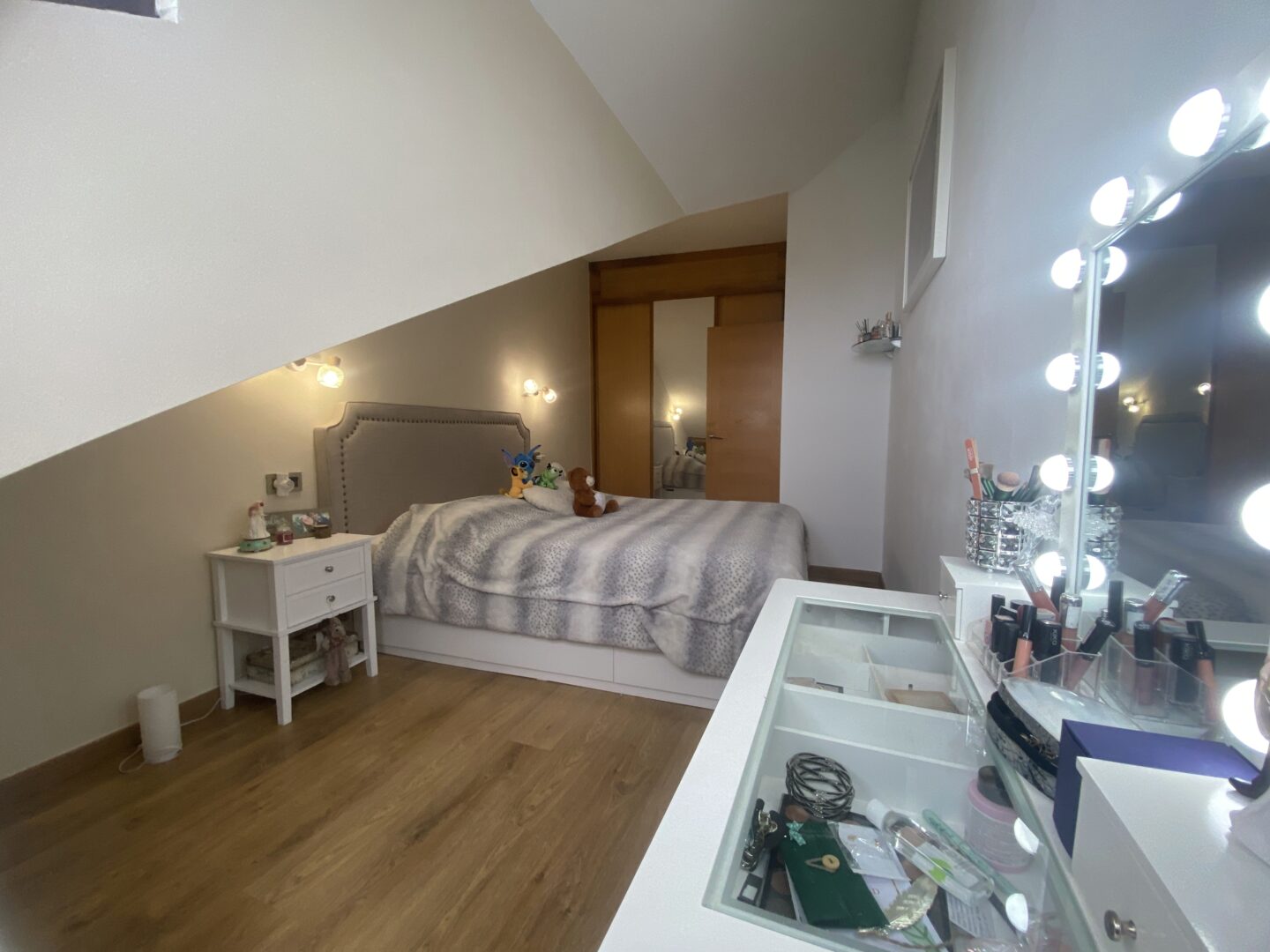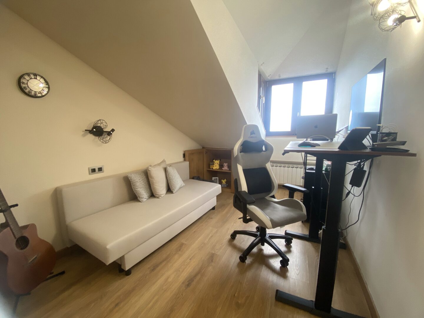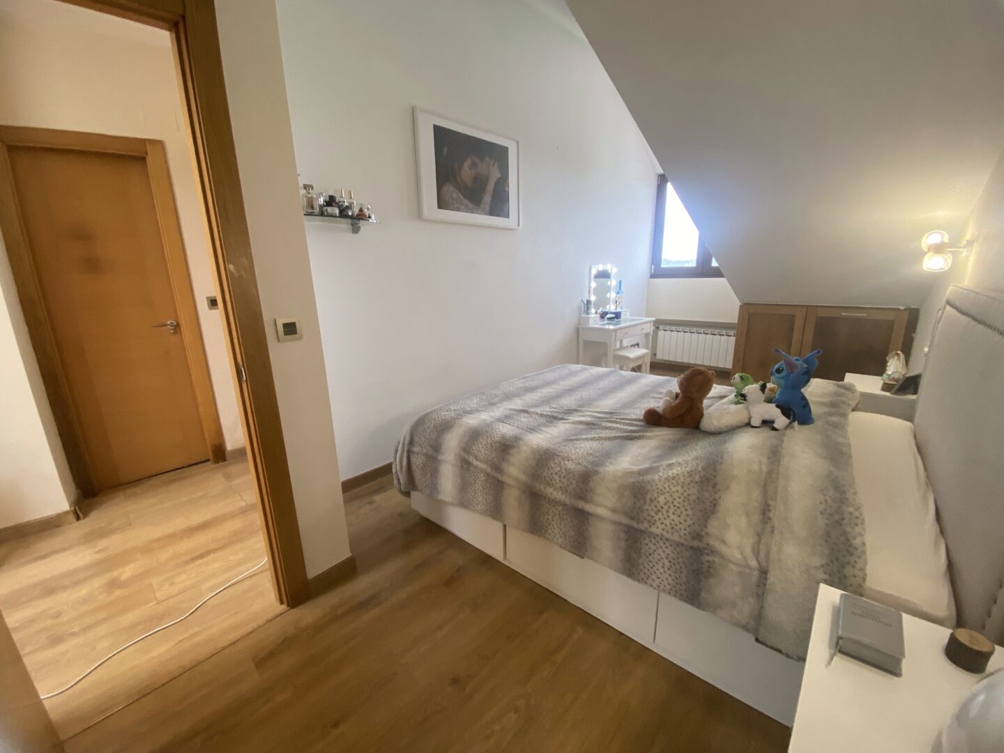 En la planta superior están situados dos dormitorios (uno de ellos se utiliza como despacho y el otro con cama de matrimonio y armarios empotrados) y un baño completo con plato de ducha. Ventanas de PVC con doble cristal. Cuenta con todas las instalaciones en perfecto estado. En la escalera entra mucha luz natural desde el tejado.