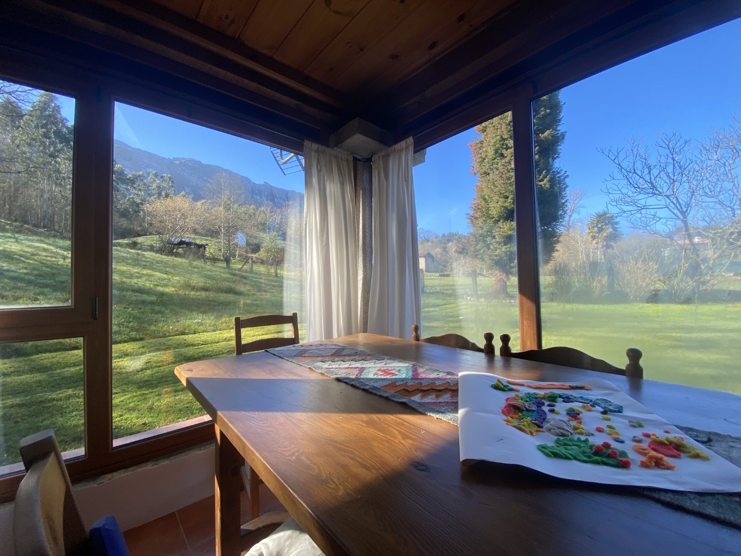 Planta baja: 1 baño, cocina y salón con gran ventanal con vistas al jardín y a la montaña.