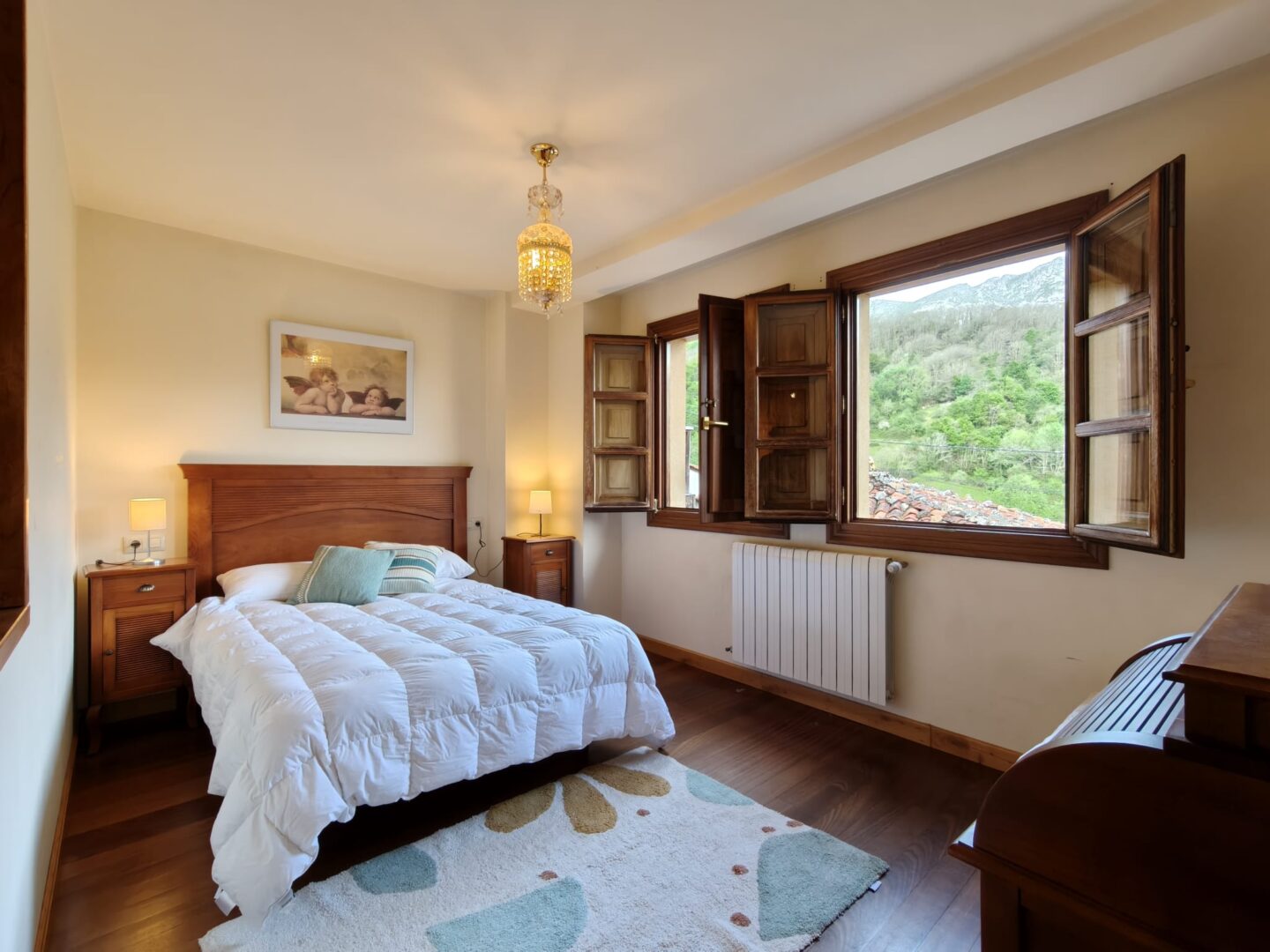 Desde el dormitorio se disfrutan unas de las vistas más privilegiadas del concejo, abiertas sobre los valles de Quirós y con la silueta inconfundible de Peña Rueda recortándose en el horizonte.