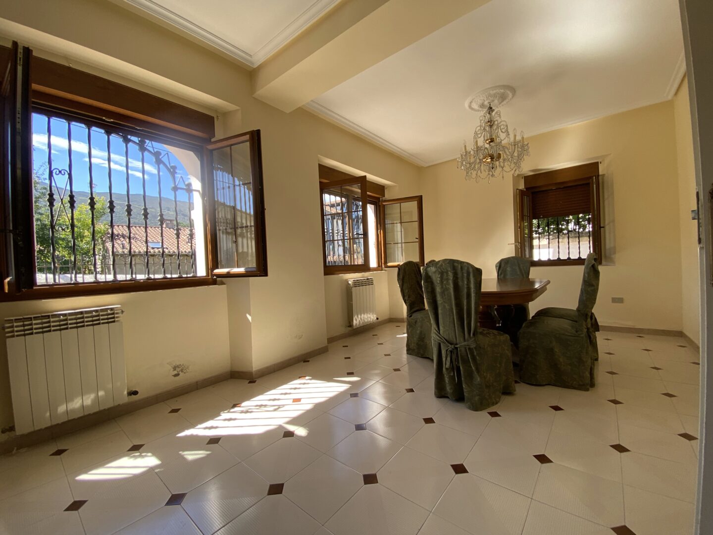 En la planta baja, se accede desde una corralada totalmente cerrada con verjas de hierro, que cuenta con una superficie de 48 m². La entrada principal, a través de un gran arco, nos conduce a amplias zonas de comedor, salón independiente y una cocina completamente equipada con salida al cuarto de calderas. La vivienda dispone de calefacción con radiadores en todas las estancias , en perfecto estado de funcionamiento.