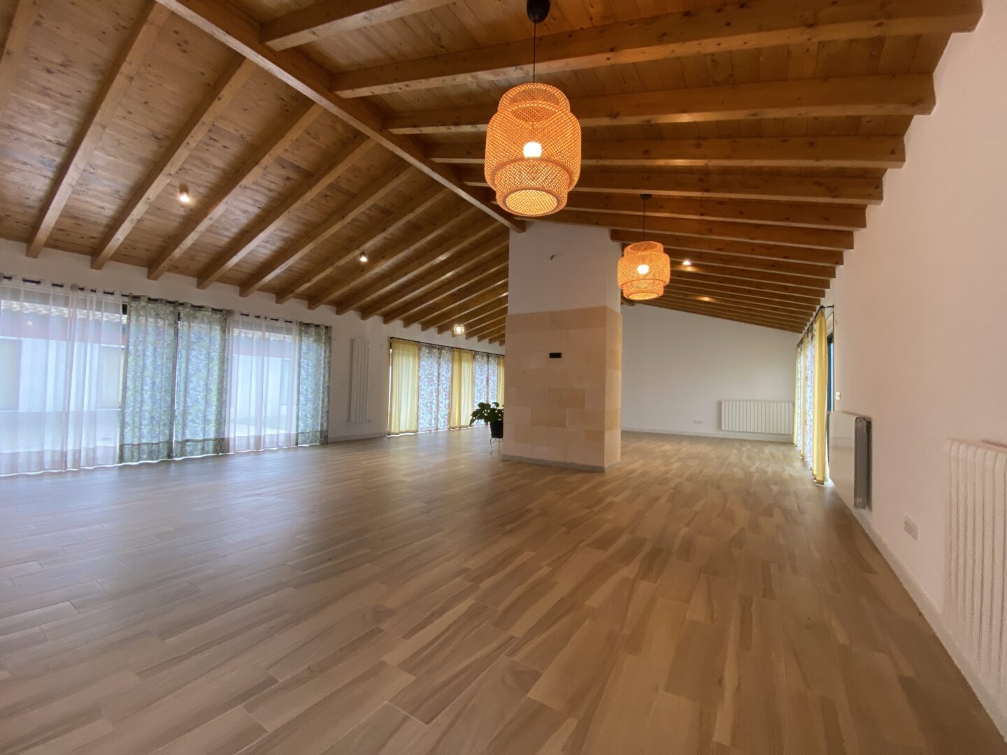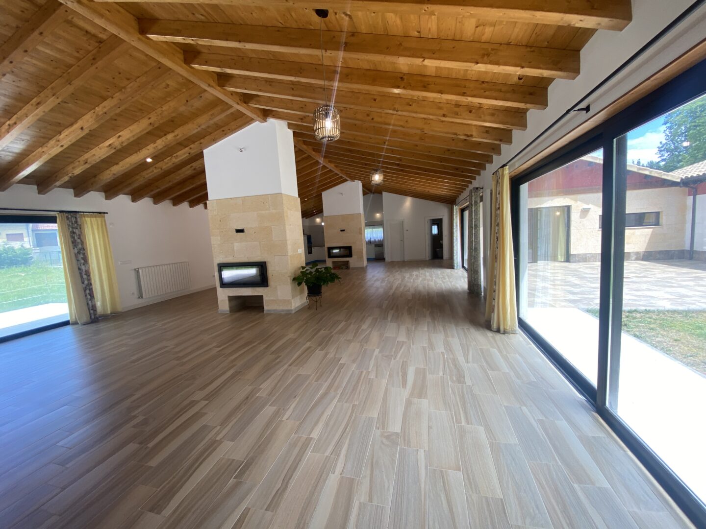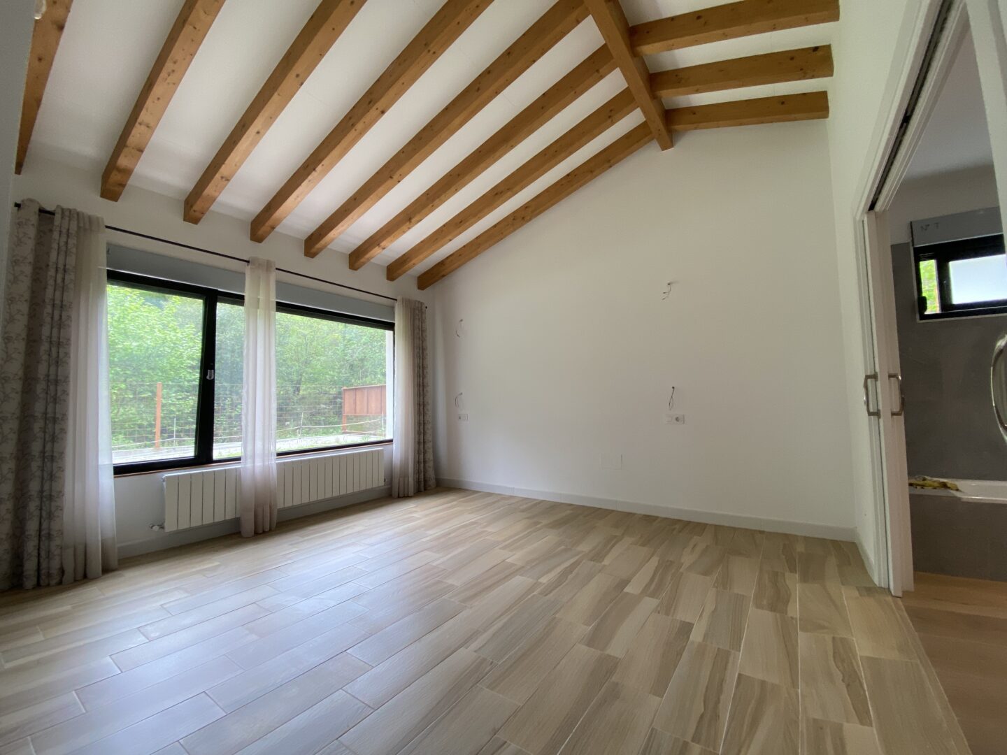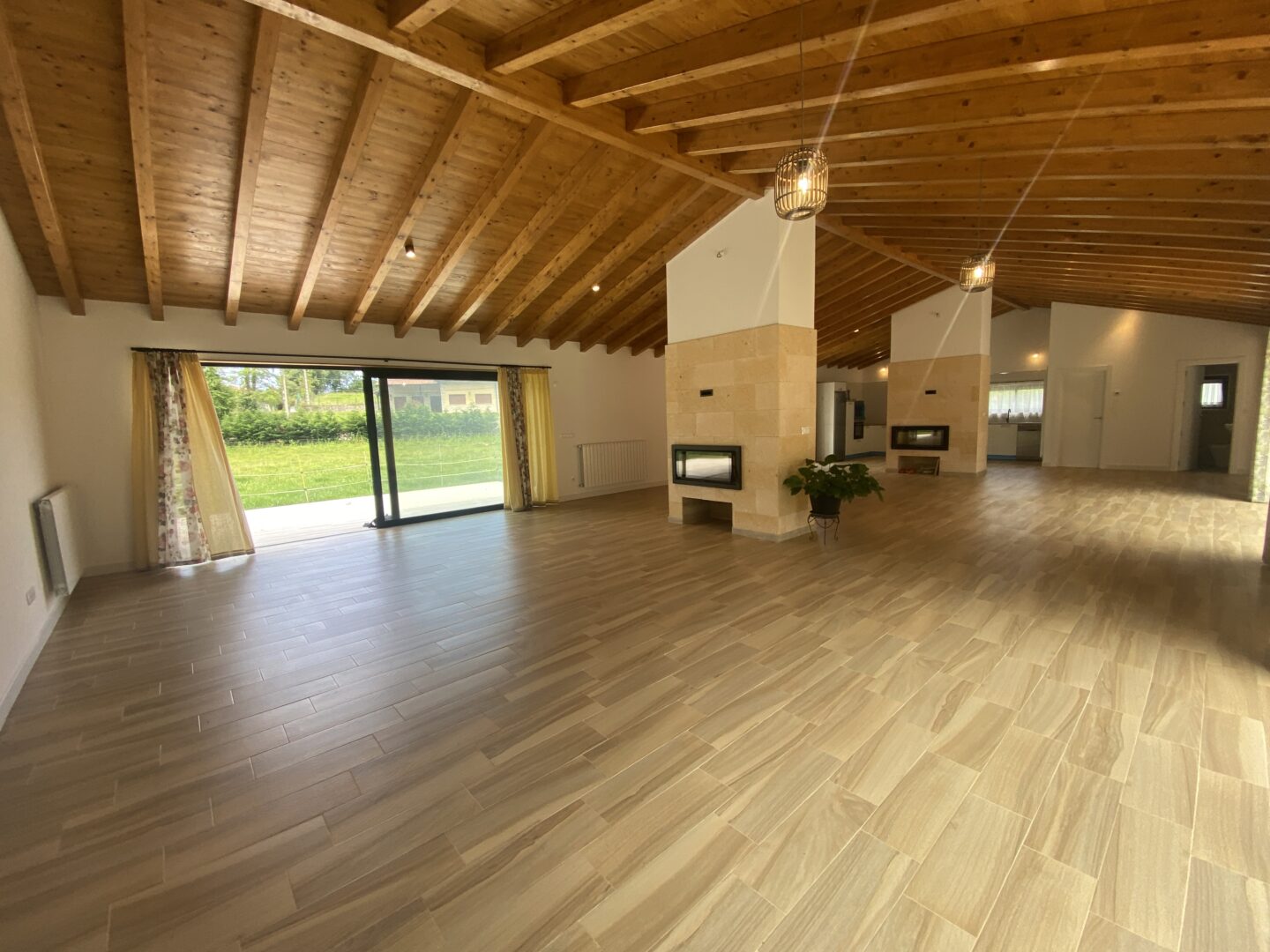 - Techos altos con vigas de madera a la vista