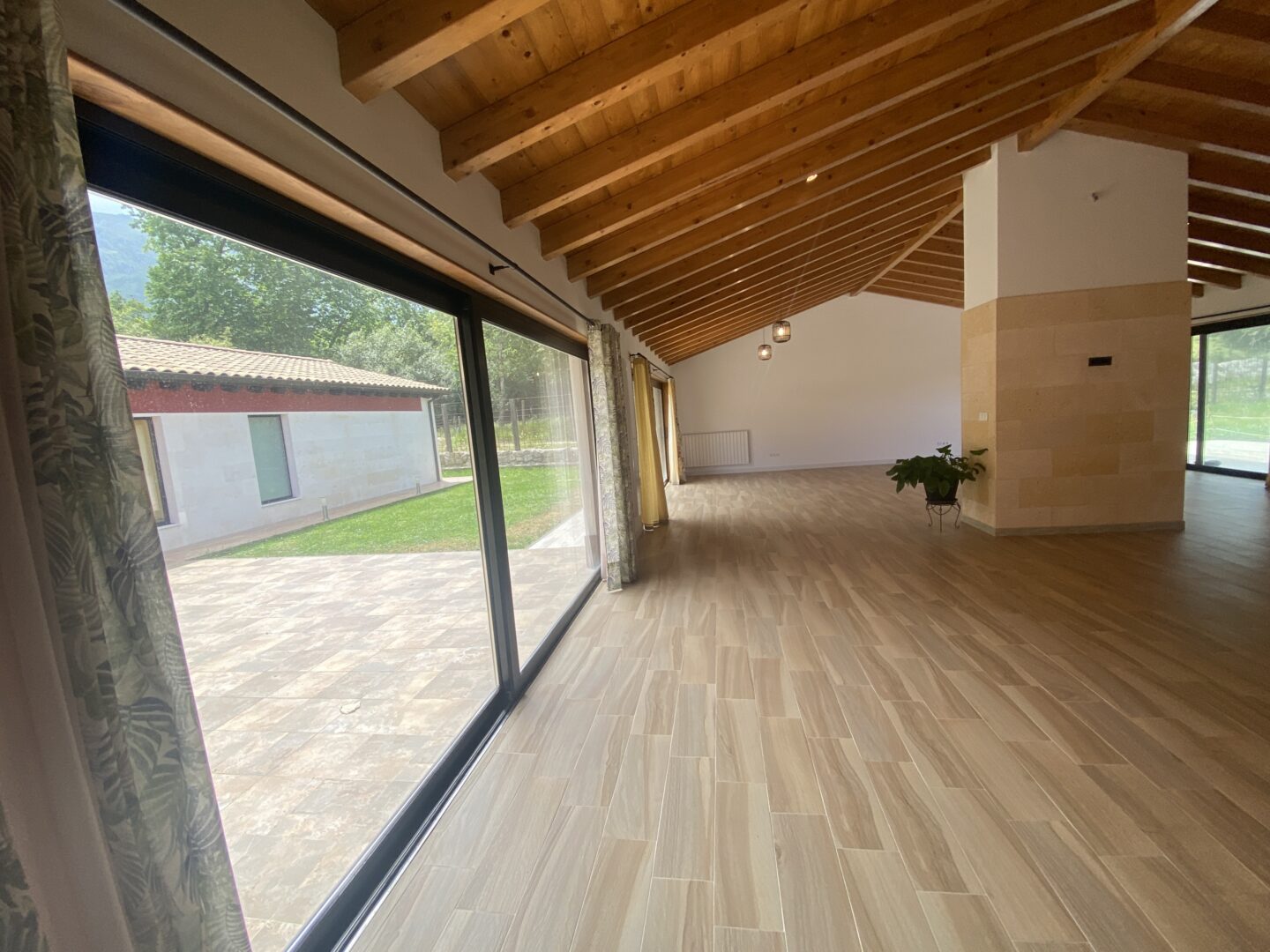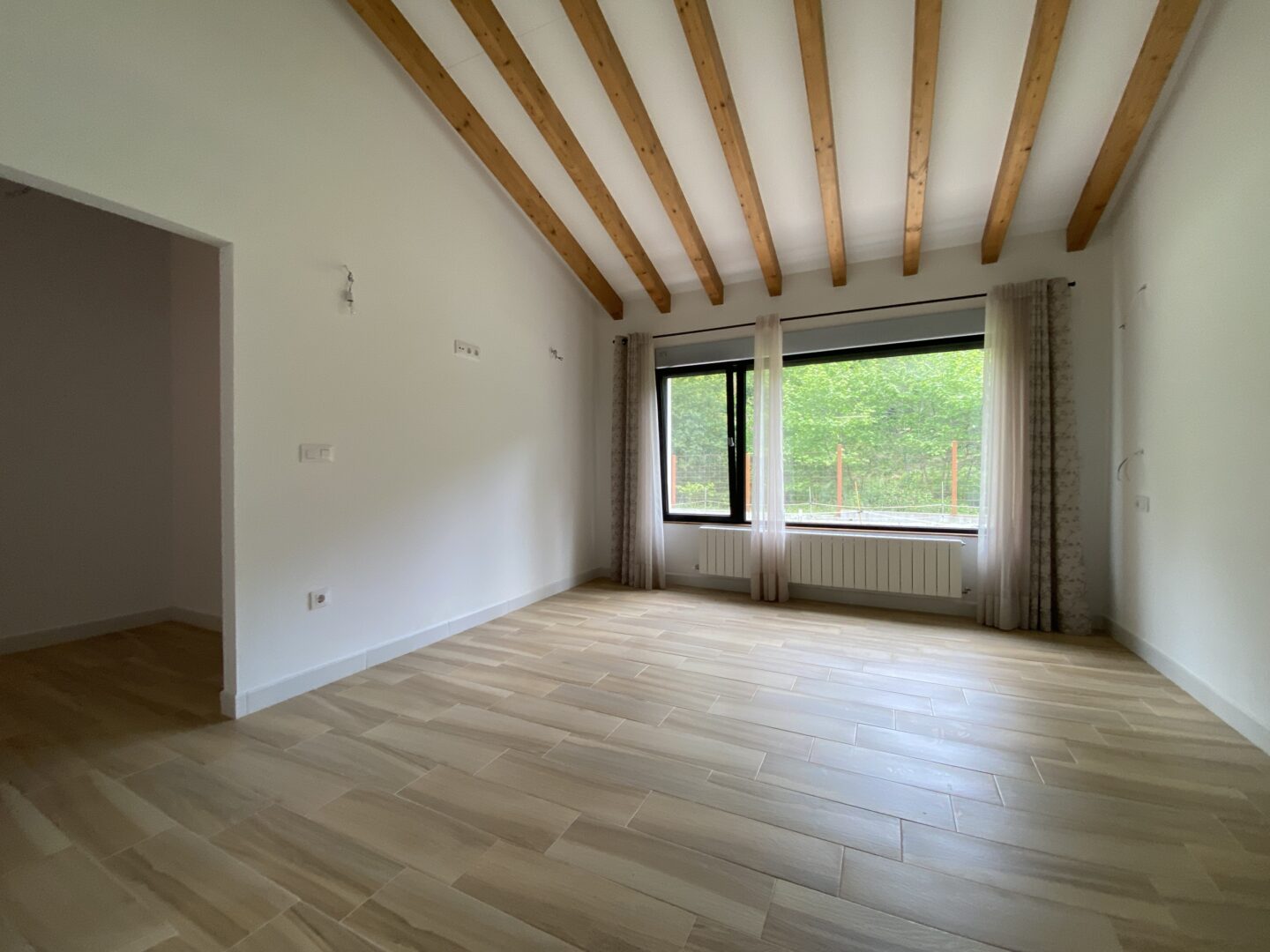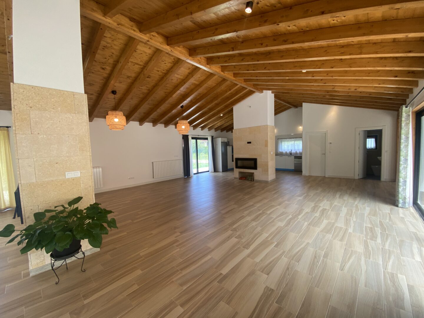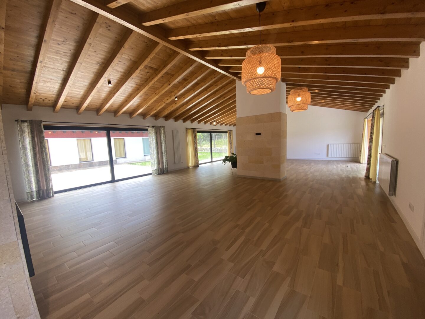 - Techos altos con vigas de madera a la vista