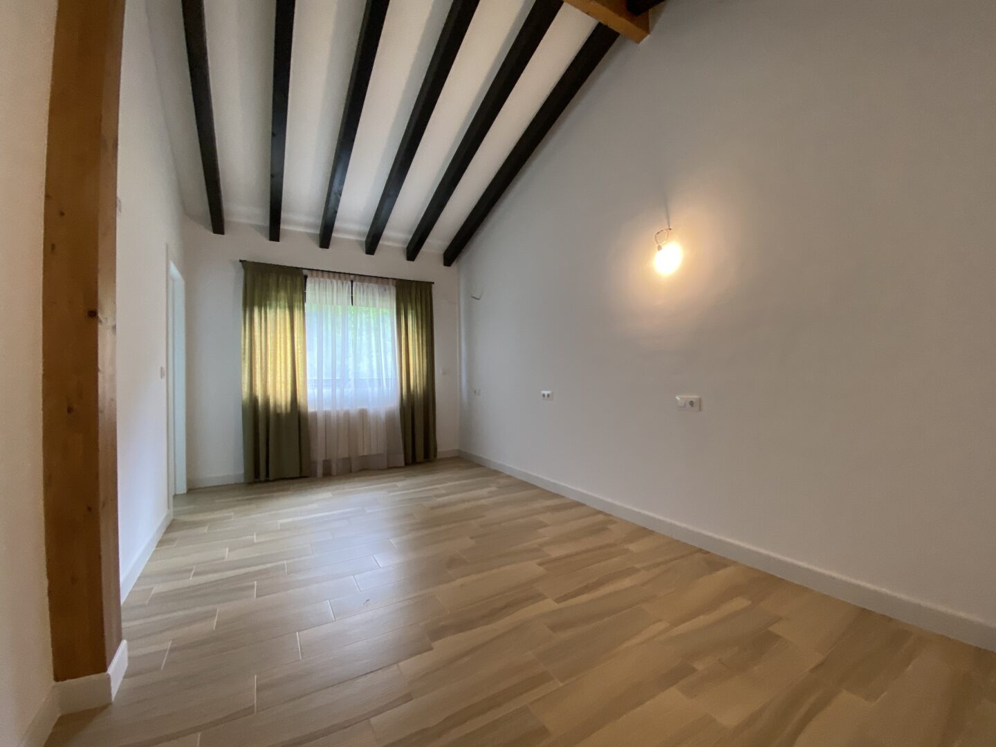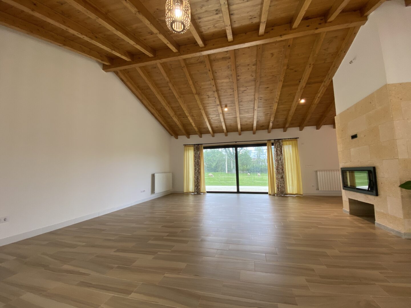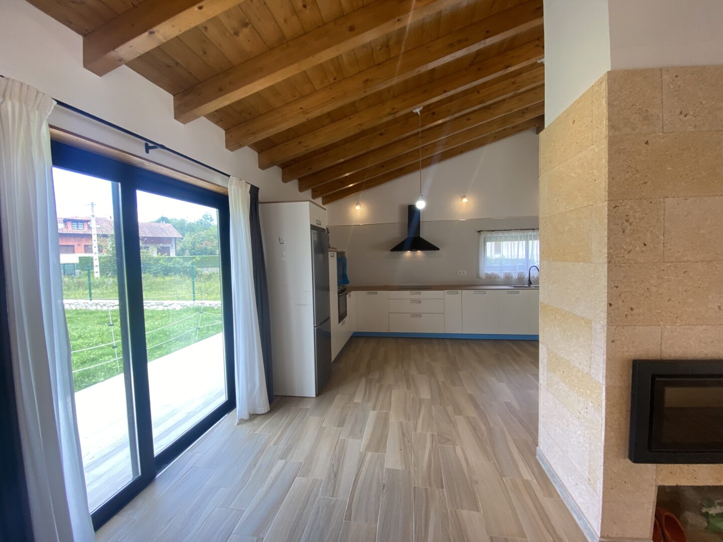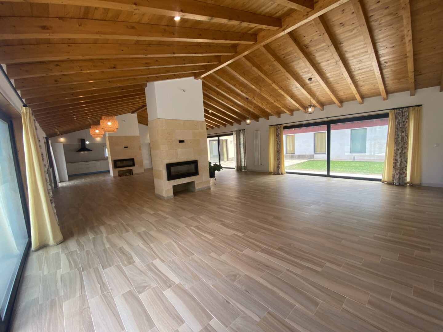 - Techos altos con vigas de madera a la vista