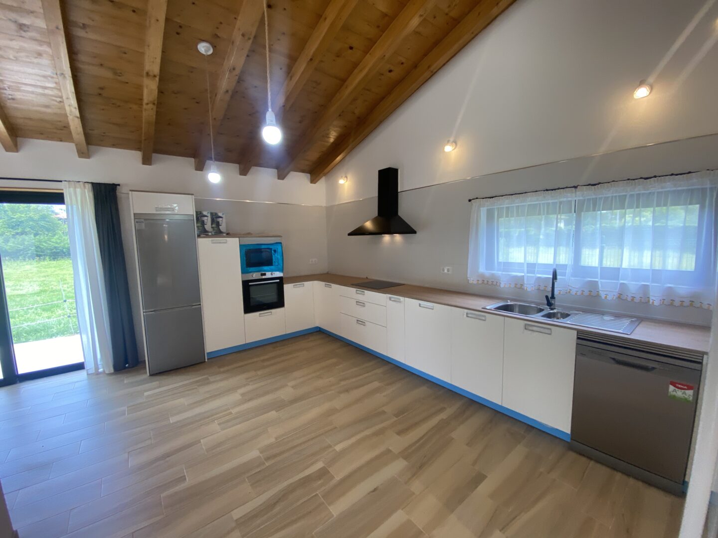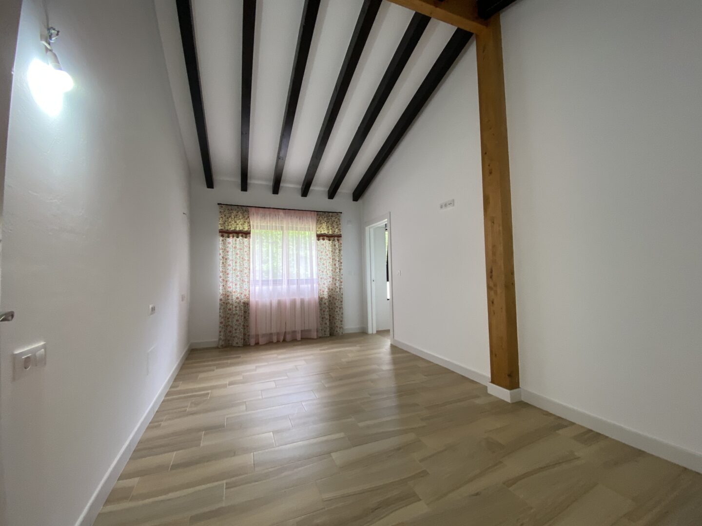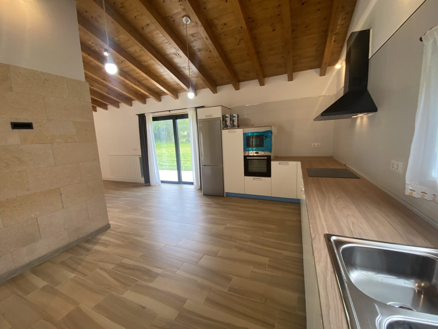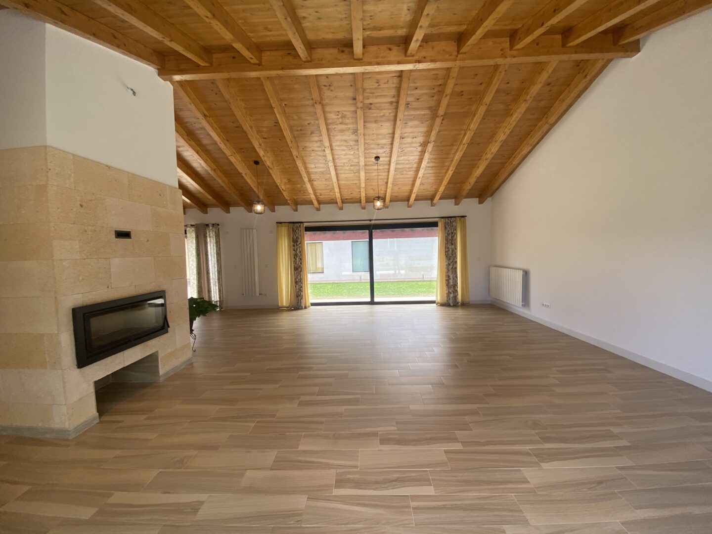 - Techos altos con vigas de madera a la vista