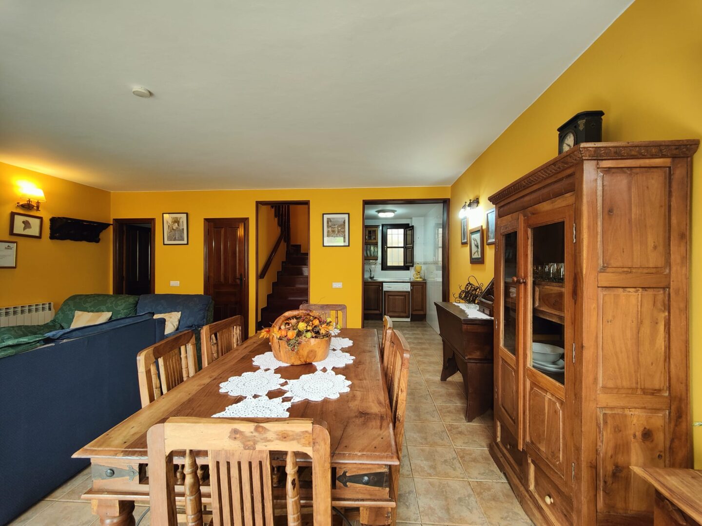 La entrada a las casas es un trabajo excelente de piedra y la finca está bien delimitada. Por la parte trasera, accedemos a un cuarto de aperos donde se guarda herramientas y vajilla y útiles para la casa, y desde esta parte podemos comprobar el excelente estado de la cubierta. Estas antiguas casas del ferreiru (el herrero en asturiano), siguen teniendo cerca la fragua original, que añaden encanto a un lugar en sí lleno de tradición y cultura, fuente de nuestro patrimonio.