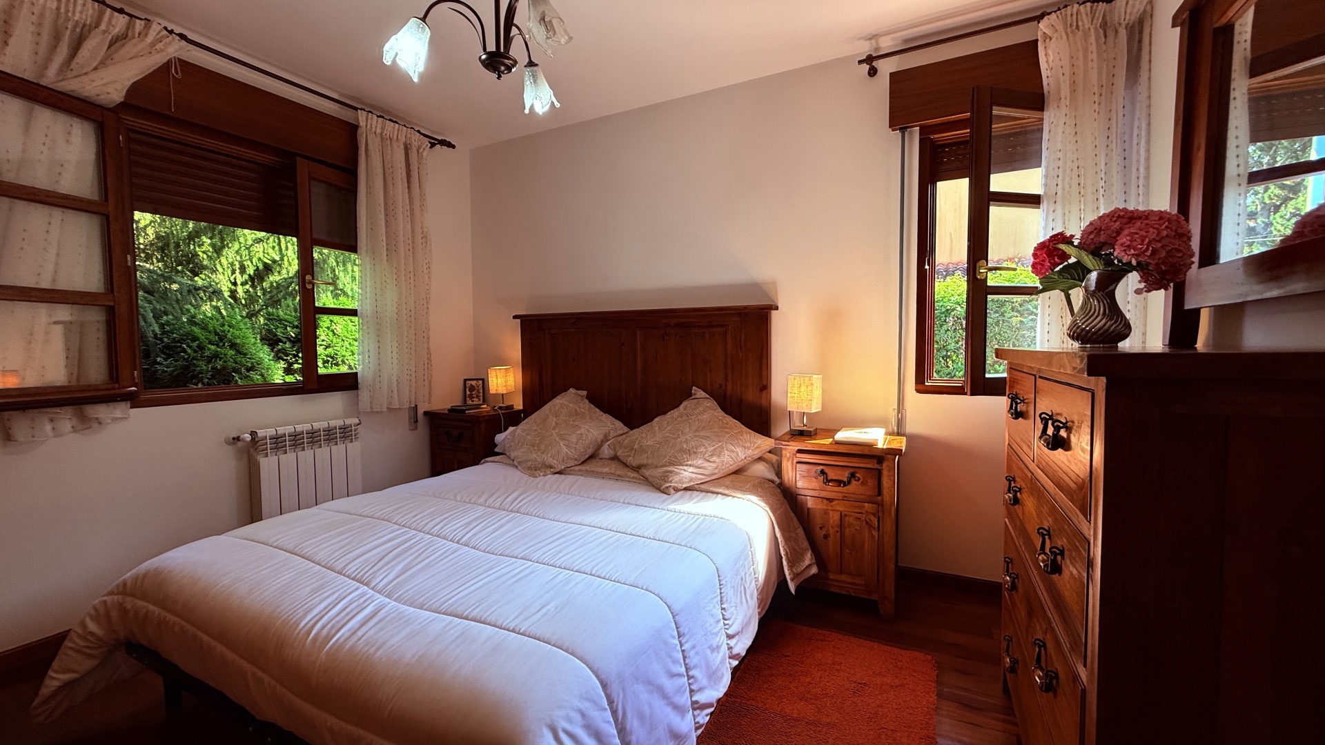 Tres dormitorios espaciosos con grandes ventanas al jardín