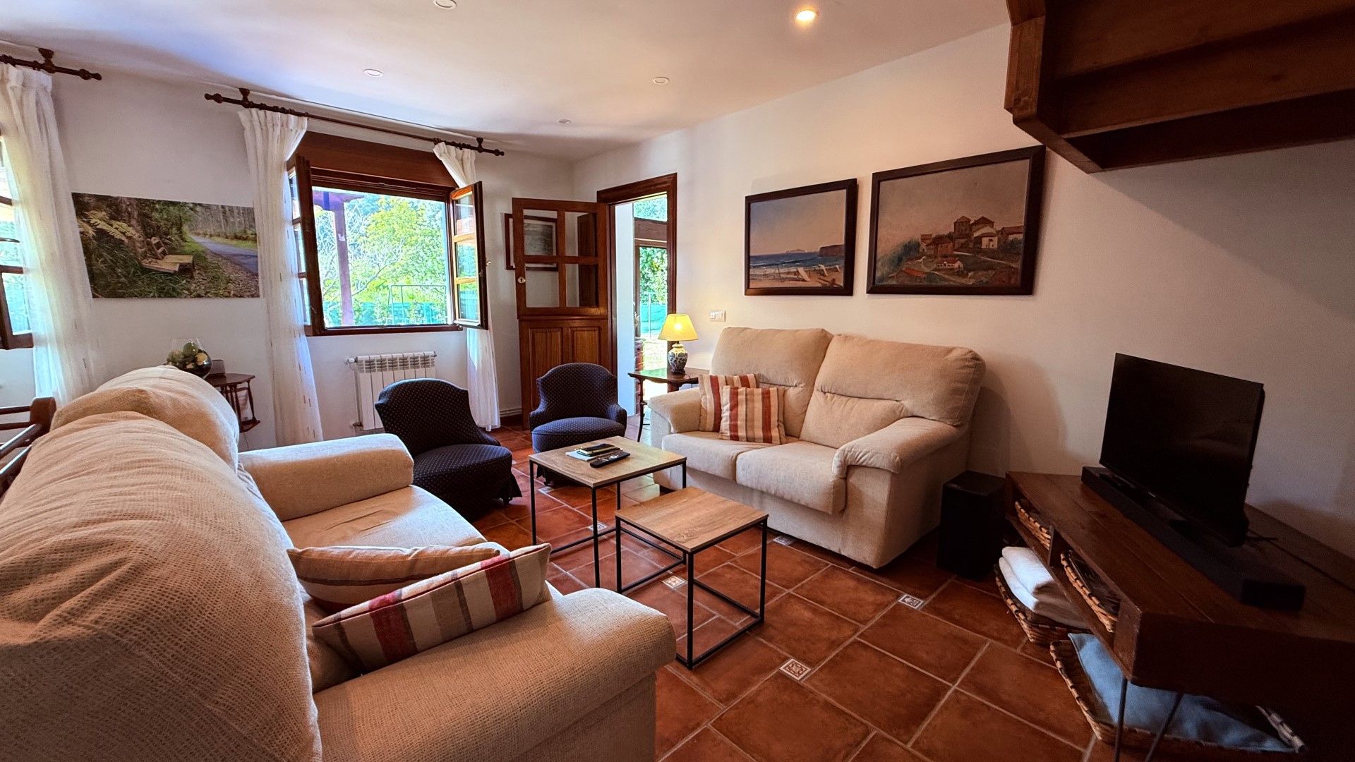 Estás a solo 5 minutos en coche de playas como Gulpiyuri, San Antolín, La Huelga o Cuevas del Mar, pero cuando estás en casa, te rodea el silencio, el verde y la paz.