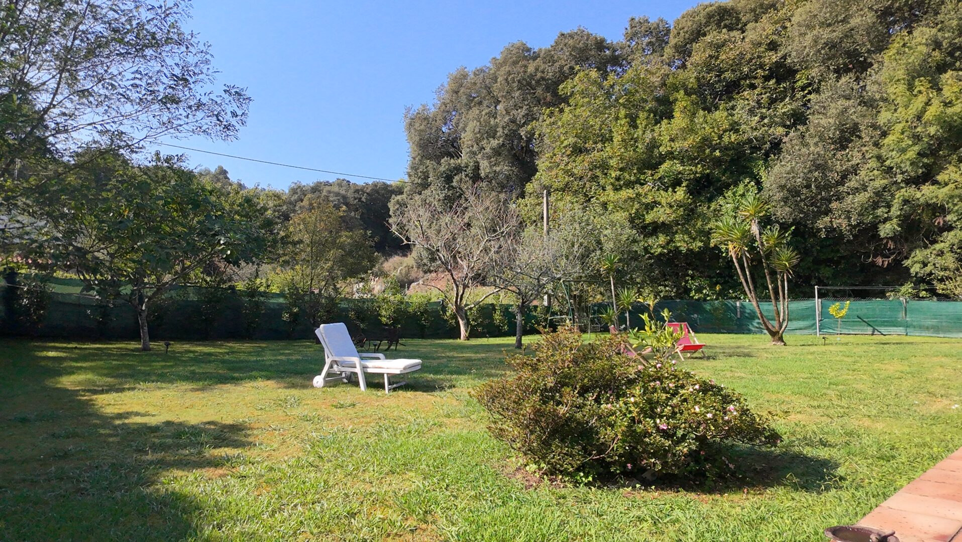 Un jardín amplio y perfectamente aprovechable. La topografía plana no solo facilita el mantenimiento, sino que hace muy sencilla la futura instalación de una piscina. Además, los niños pueden correr sin riesgos y se aprovecha todo el espacio exterior.